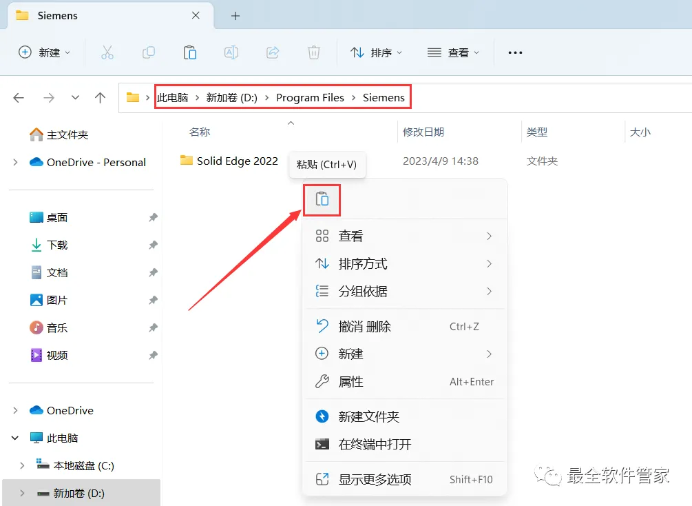 9、找到【Solid Edge 2022】文件夹,再右键点击【复制按钮】