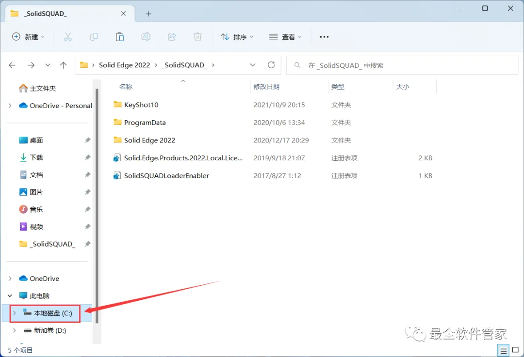 8、回到Solid Edge 2022文件夹,找到【_SolidSQUAD_】文件夹,右键【打开】它