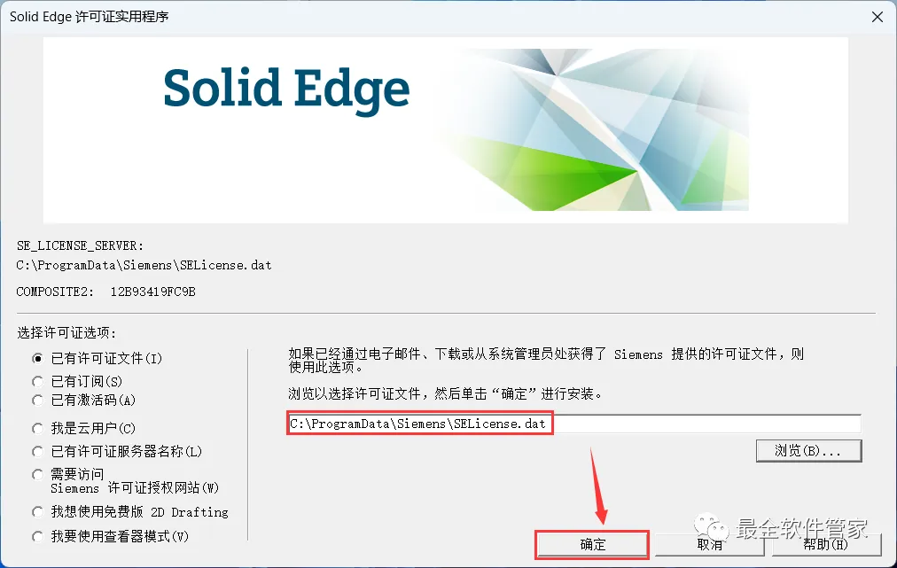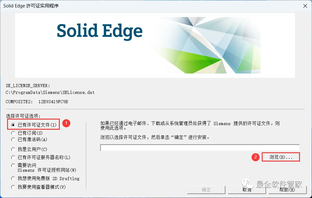 26、勾选【已有许可证文件】,再点击【浏览】