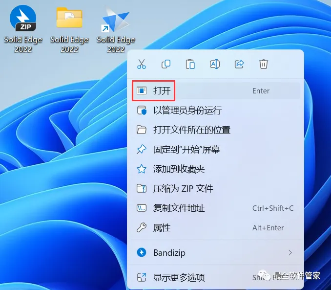 25、回到桌面,右键桌面上的【Solid Edge 2022软件图标】,点击【打开】