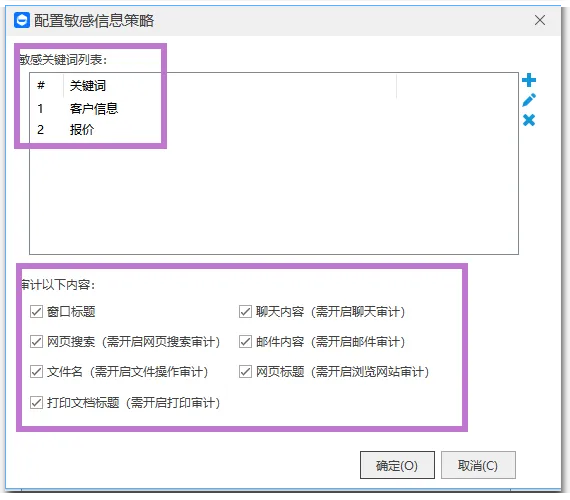 管理员可自定义敏感词库,如客户信息、报价、合同、竞业、隐私等关键词。
