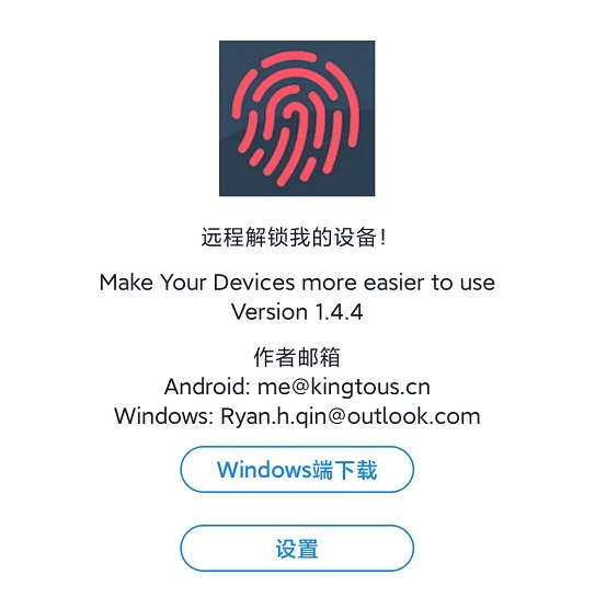 差友们在安卓手机端下载好远程解锁 App 之后,还得在 Windows 电脑上装一个软件,下载地址在 App 设置中的 “ Windows 端下载 ” 就能找到。