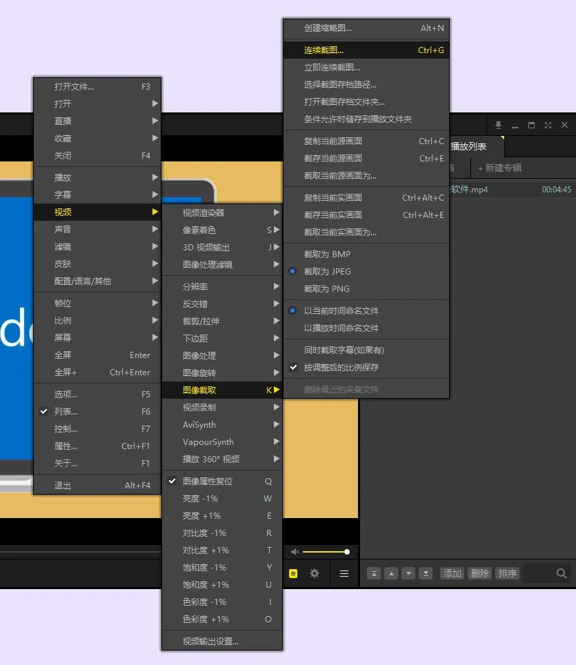 国内外有很多优秀的播放器软件,我们之前也分享过不少。但是,你绝对不知道有三款播放器,可是被称作“韩国影音三驾马车”。它们的功能也非常强大,看全球直播、倍速声音不变调、自定义所有功能,适配全平台……PotPlayer几乎支持市面上所有的音视频格式,功能也是极其丰富。PotPlayer的大多数功能,都在右键菜单中。方便你自由设置字幕、视频、屏幕等功能。软件对视频的自定义设置,帮助提升视频画质,强大到堪比Ps:其中,我个人最喜欢的是“连续截图”功能,它可以帮你快速截取影视中的镜头,方便之后的拼接: