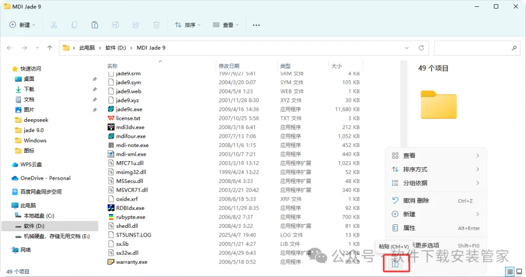 1.选择【Jade9.0】到本地,选择非系统自带的安装软件,【解压到Jade9.0】