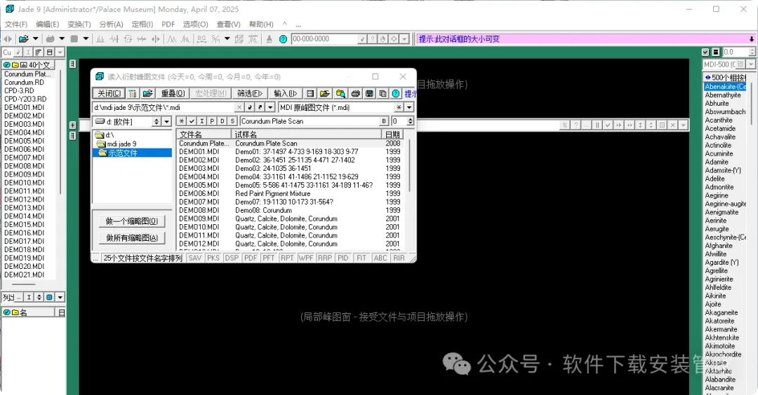 Jade 9.0是一款功能强大、全功能的XRD图谱处理和分析软件,特别注重定量分析和鉴定物相。它由MDI开发,现由国际衍射数据中心(ICDD)提供支持,是材料科学和晶体学领域研究和工业应用中的标准工具。Jade 9.0提供了全面的XRD数据分析工具,包括物相检索、图谱拟合和多谱显示等,其用户友好的界面和强大的功能使其成为XRD数据分析的必备工具。