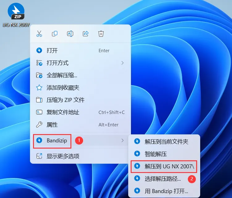 1、下载UG NX 2007软件安装包到电脑上,右键选择【解压到UG NX 2007\】