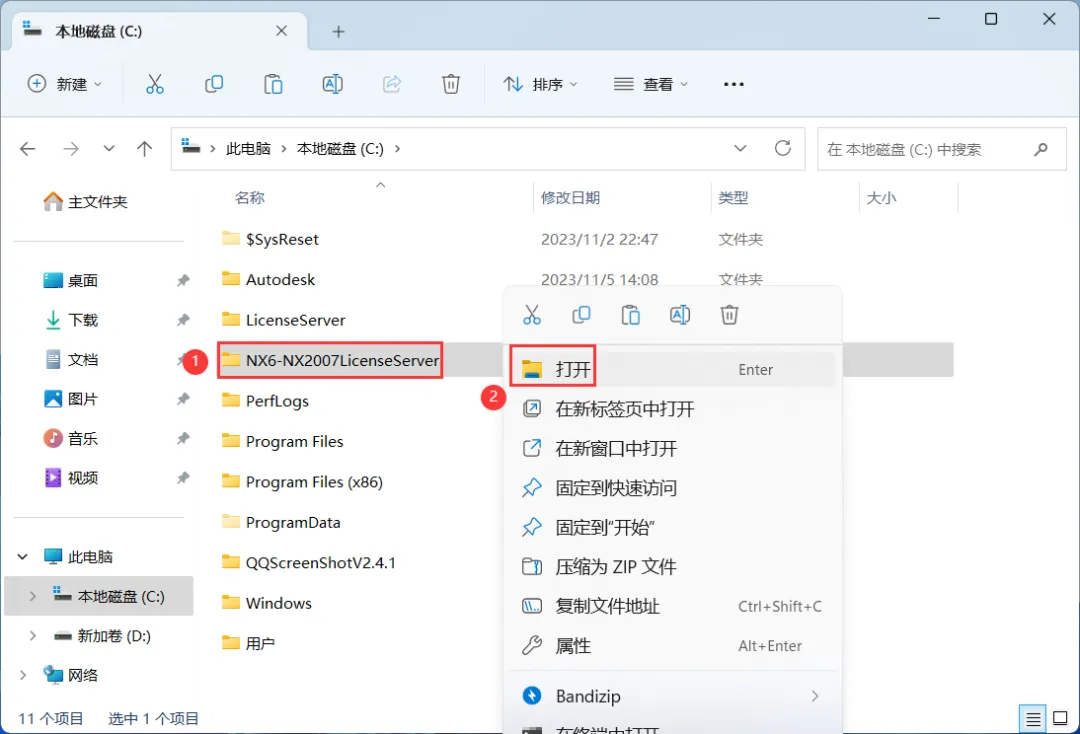 6、找到粘贴的【NX6-NX2007LicenseServer】文件夹,再右键【打开】它