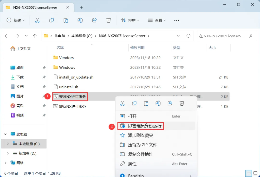 7、找到【安装NX许可服务】应用程序,右键选择【以管理员身份运行】它