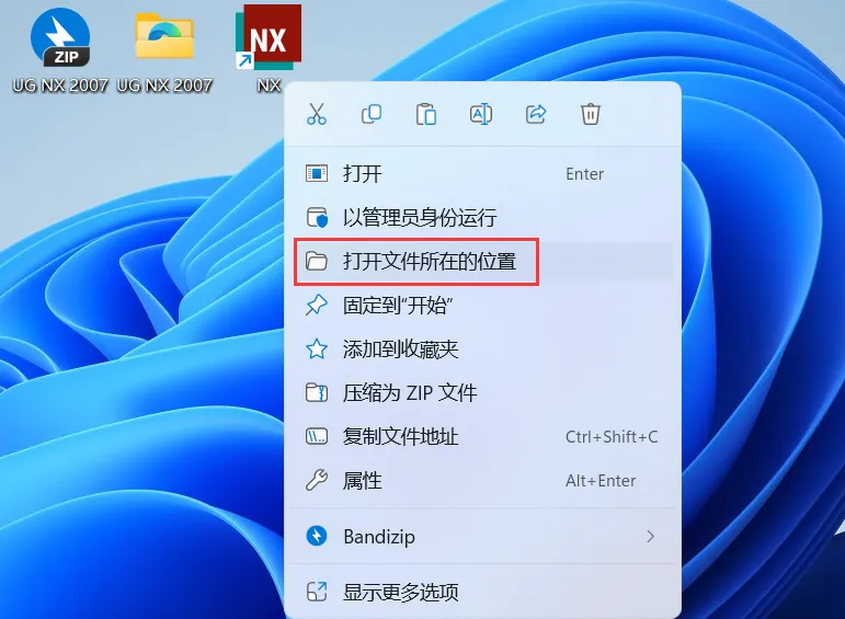 26、右键桌面上的【NX软件图标】,点击【打开文件所在的位置】