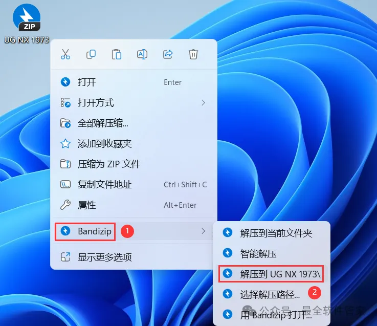小编用的解压软件是Bandizip,获取Bandizip软件安装包。