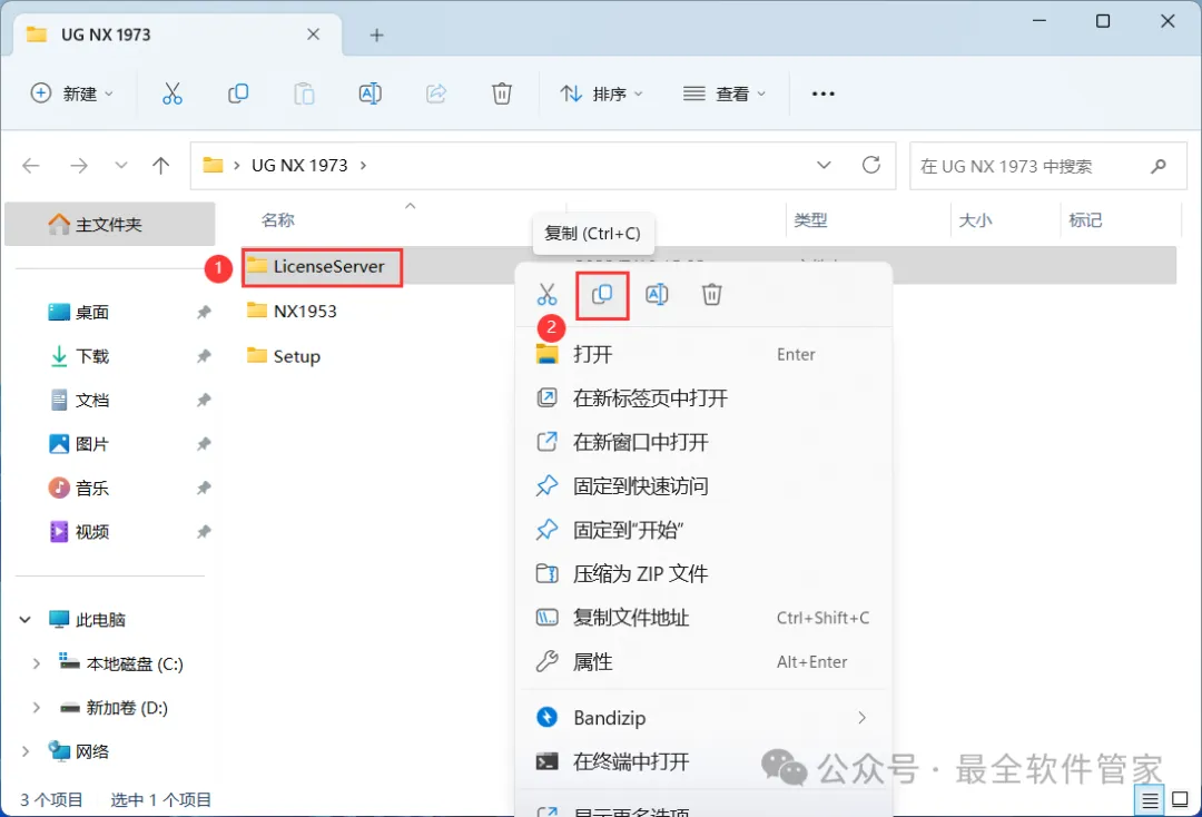 3、找到【LicenseServer】文件夹,右键点击【复制按钮】