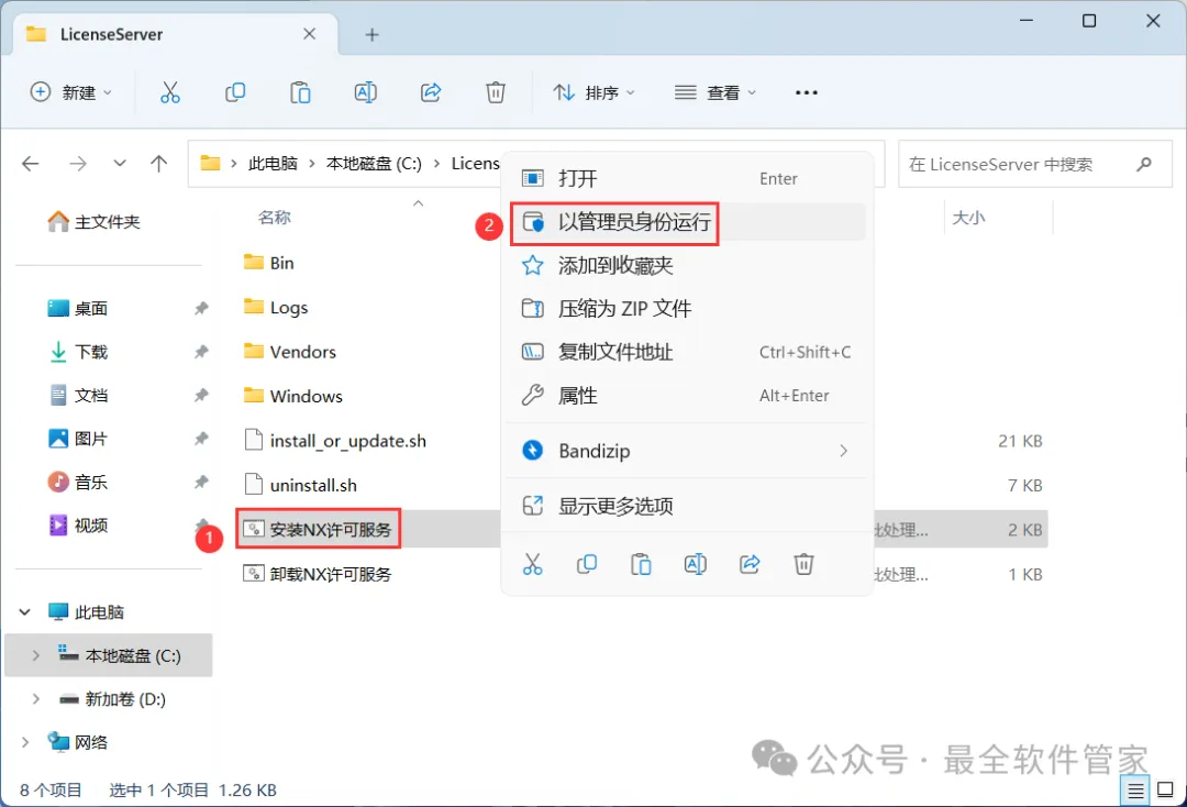 6、找到【安装NX许可服务】应用程序,右键选择【以管理员身份运行】它