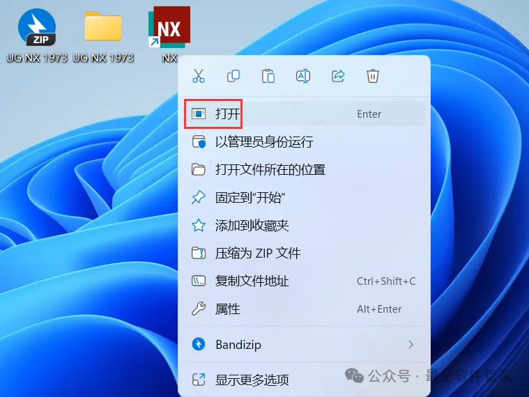 30、回到桌面,右键桌面上的【NX软件图标】,点击【打开】