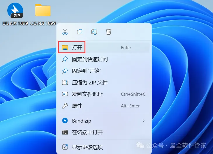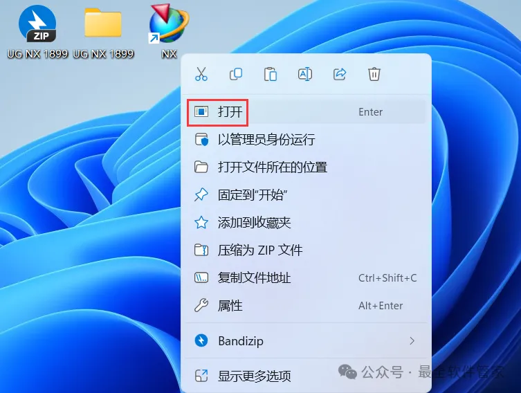 32、回到桌面,右键桌面上的【NX软件图标】,点击【打开】