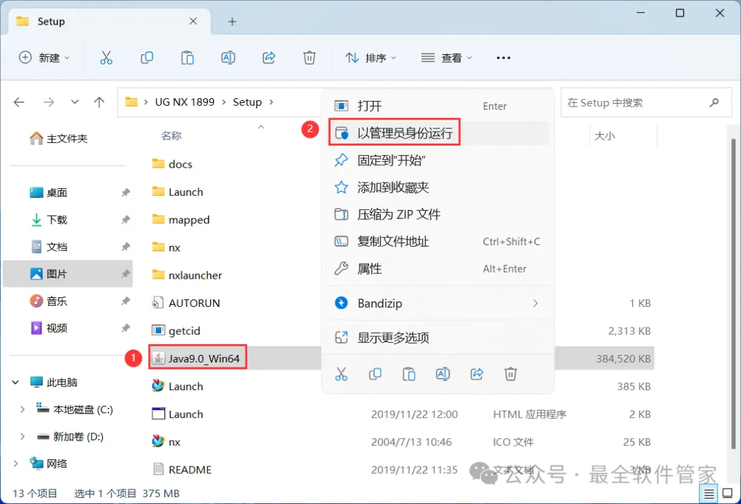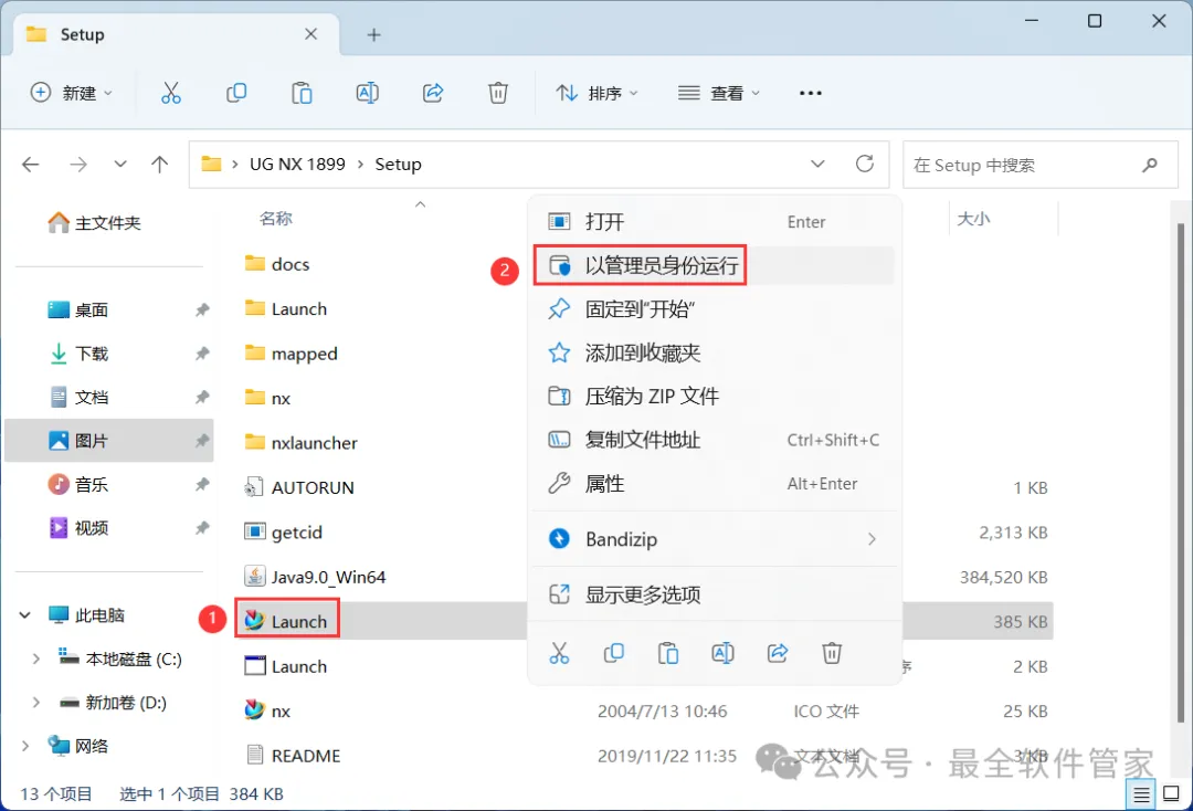 16、回到Setup文件夹,找到【Launch】应用程序,右键选择【以管理员身份运行】它