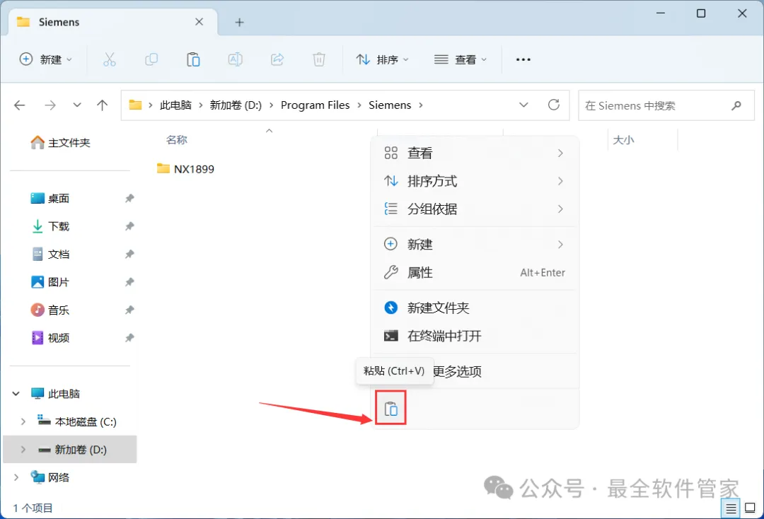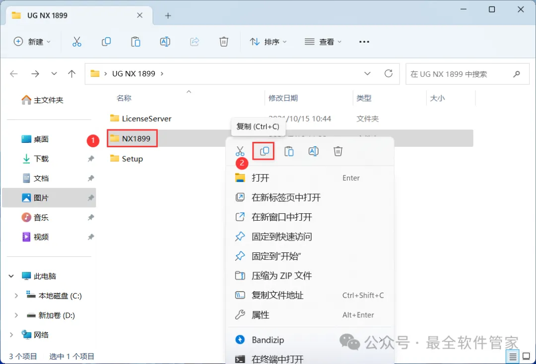27、回到UG NX 1899文件夹,找到【NX1899】文件夹,右键点击【复制按钮】