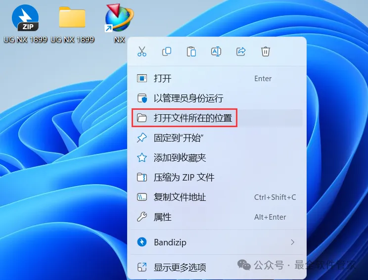 28、右键桌面上的【NX软件图标】,点击【打开文件所在的位置】