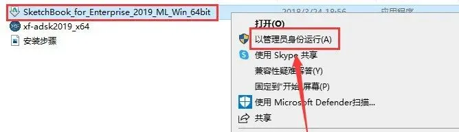 3.打开解压后的文件夹,鼠标右击【SketchBook_for_Enterprise_2019_ML_Win_64bit】选择【以管理员身份运行】。