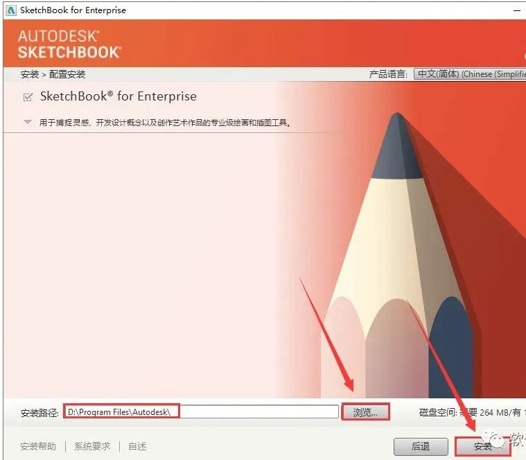 7.点击【浏览】更改安装位置(建议安装在除C盘之外的其它磁盘内,注:安装路径中不要有中文),然后点击【安装】。