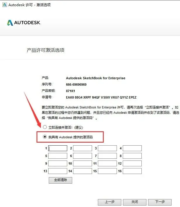 17.选择【我具有Autodesk提供的激活码】(不要关闭此界面)。