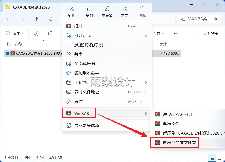 1.右键下载的压缩包,并【解压到当前文件夹】