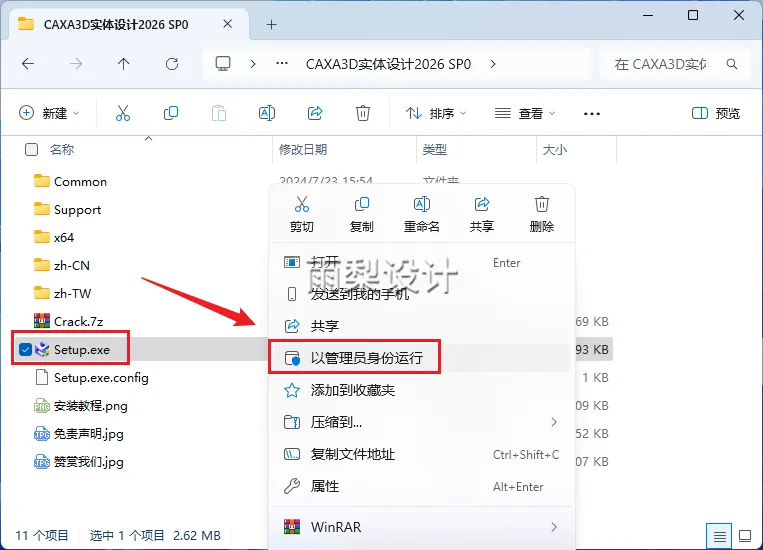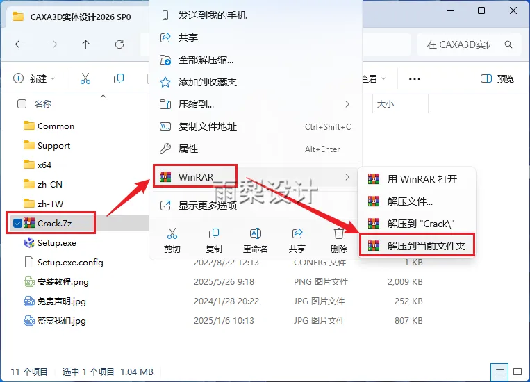 10.返回安装包;右键【Crack】选择【解压到当前文件夹】