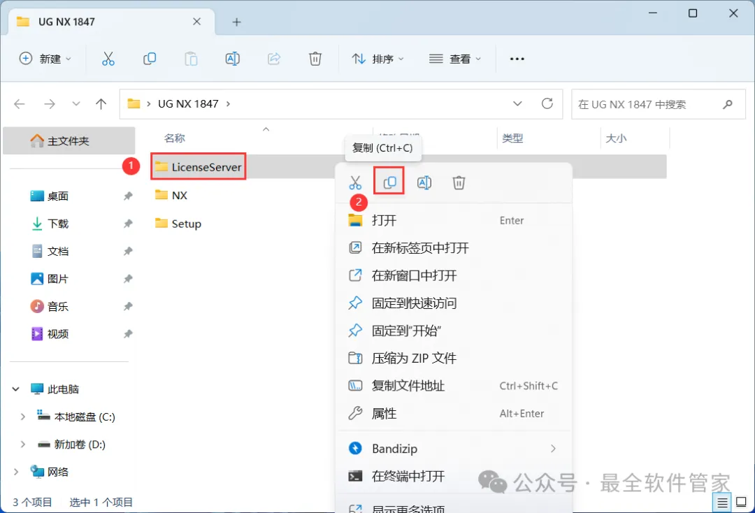 3、找到【LicenseServer】文件夹,右键点击【复制按钮】