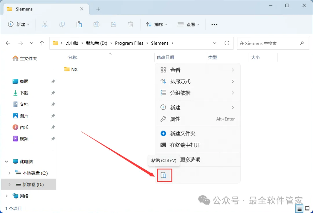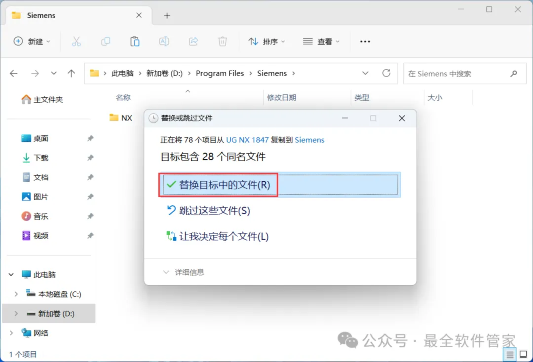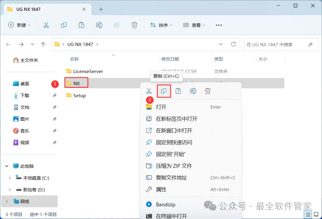 27、回到UG NX 1847文件夹,找到【NX】文件夹,右键点击【复制按钮】