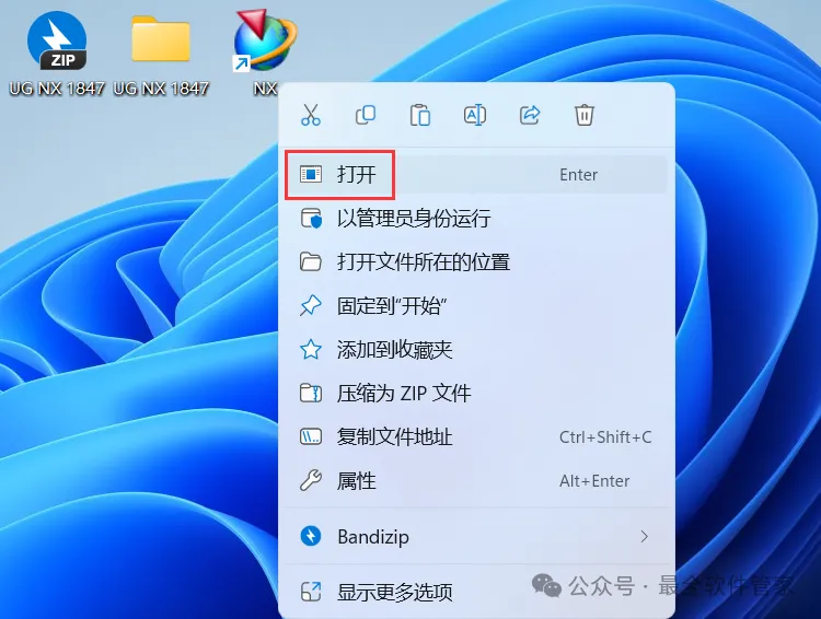 33、回到桌面,右键桌面上的【NX软件图标】,点击【打开】