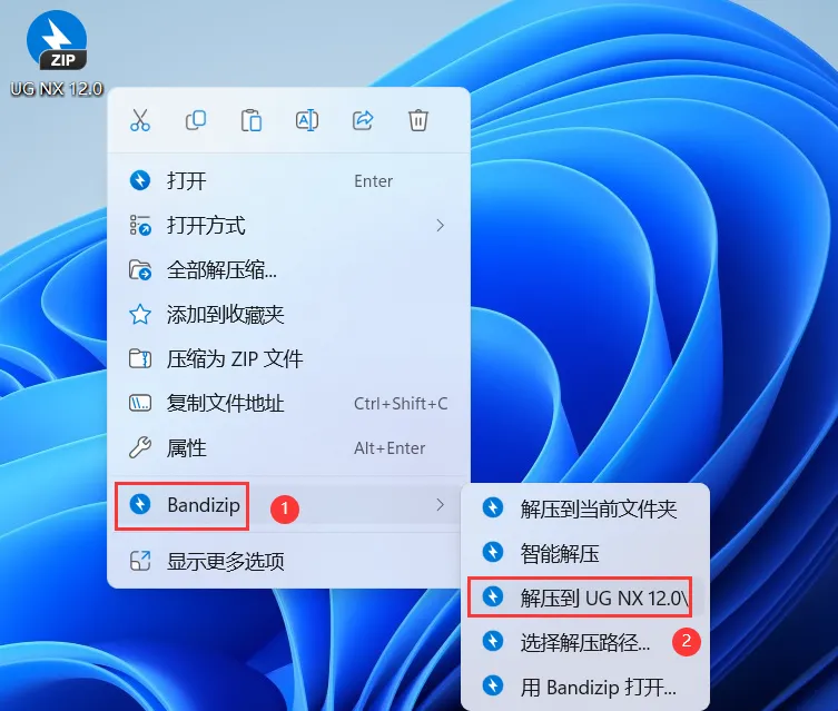 1、下载UG NX 12.0软件安装包到电脑上,右键选择【解压到UG NX 12.0\】