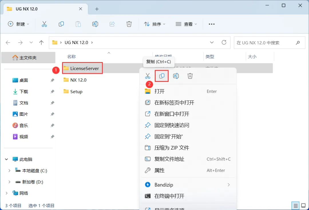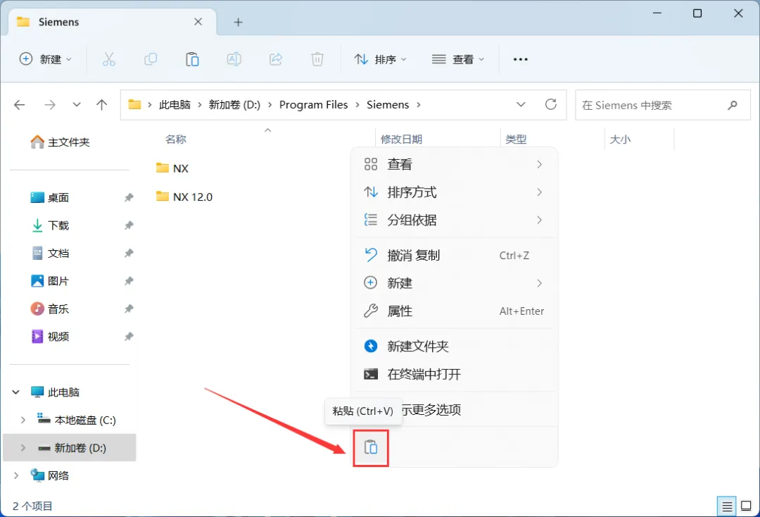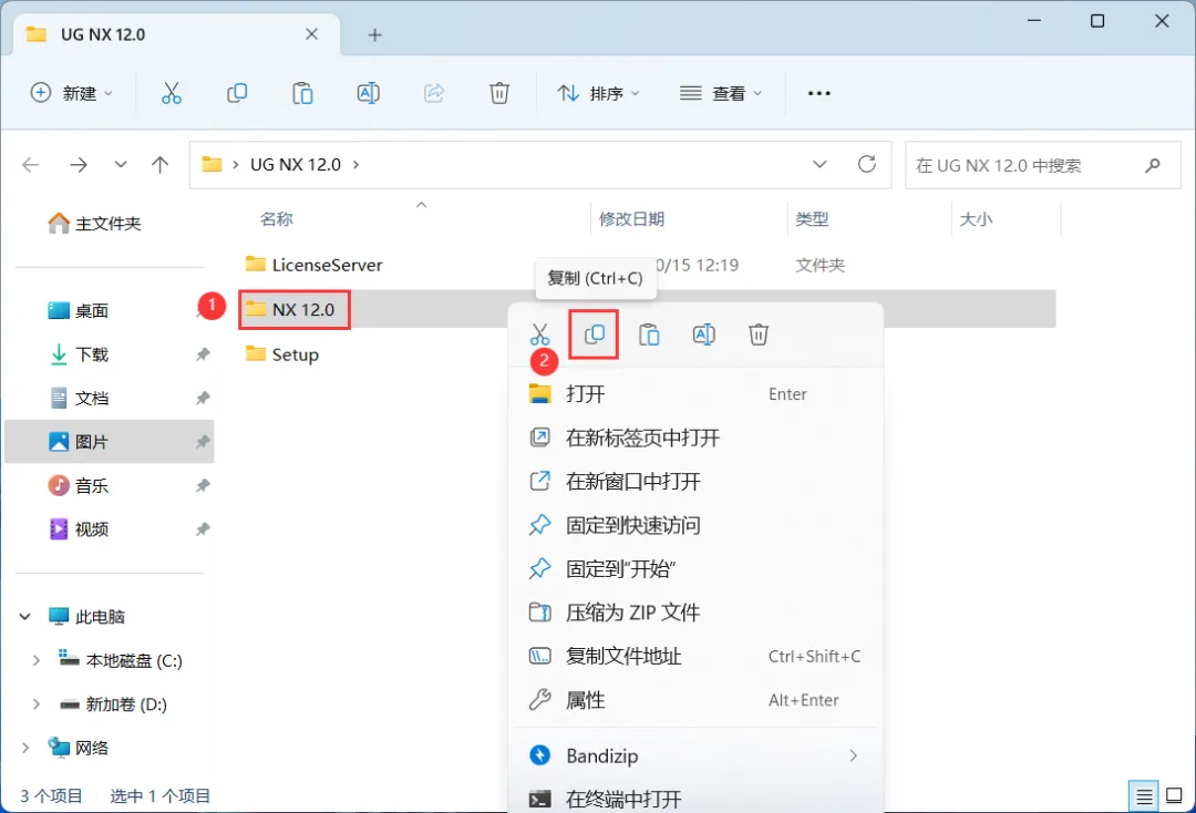 28、回到UG NX 12.0文件夹,找到【NX 12.0】文件夹,右键点击【复制按钮】