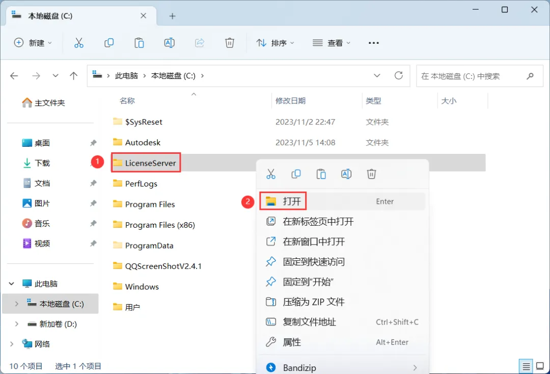 5、找到粘贴的【LicenseServer】文件夹,再右键【打开】它