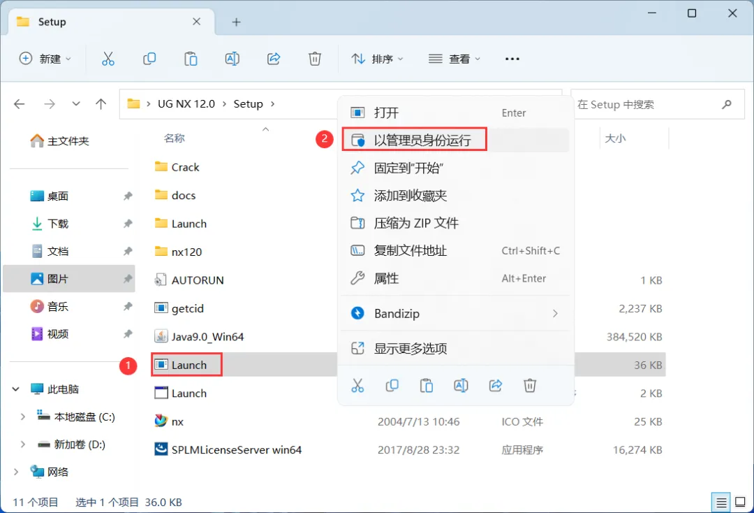 16、回到Setup文件夹,找到【Launch】应用程序,右键选择【以管理员身份运行】它