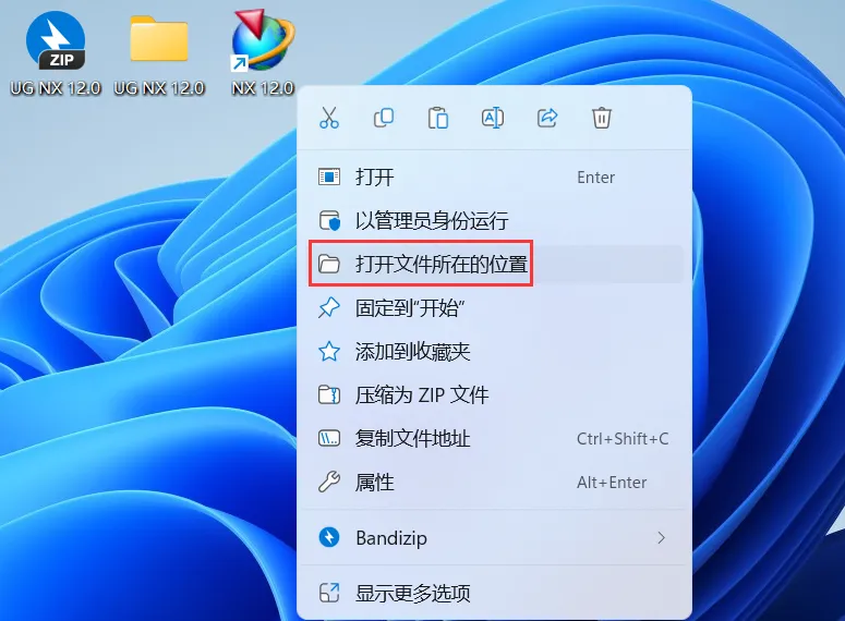 30、右键桌面上的【NX 12.0软件图标】,点击【打开文件所在的位置】