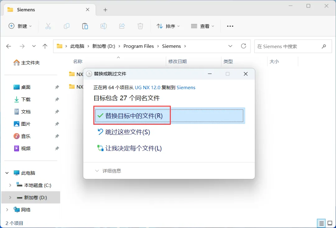 33、点击【替换目标中的文件】