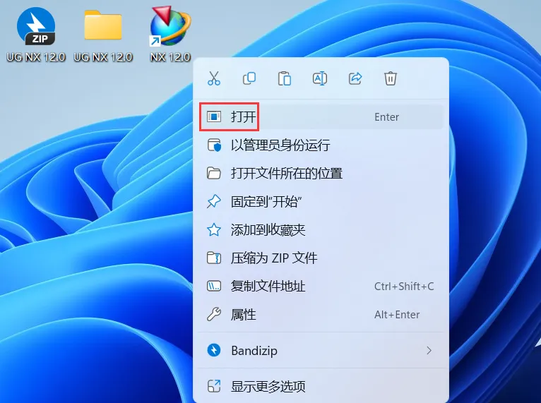 34、回到桌面,右键桌面上的【NX 12.0软件图标】,点击【打开】