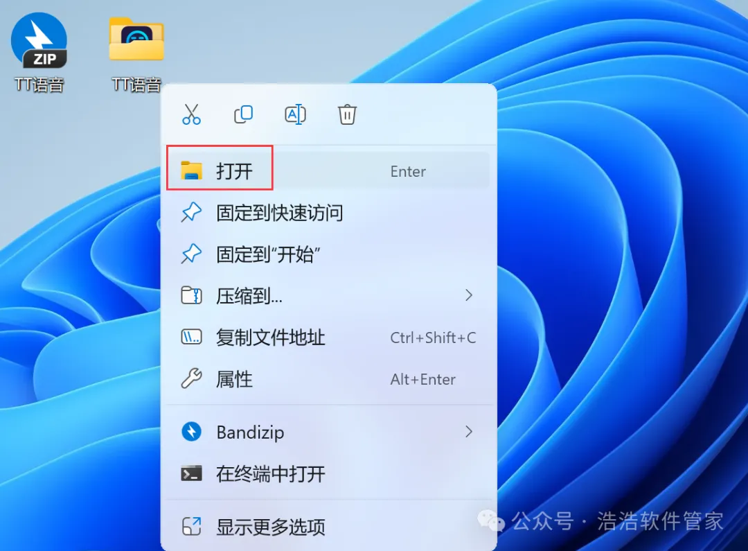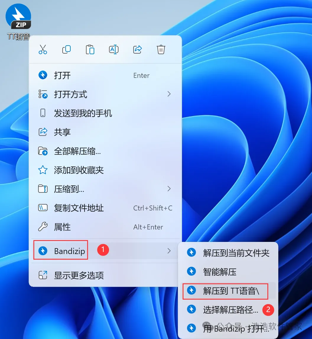 1、下载TT语音软件安装包到电脑上,右键选择【解压到TT语音\】