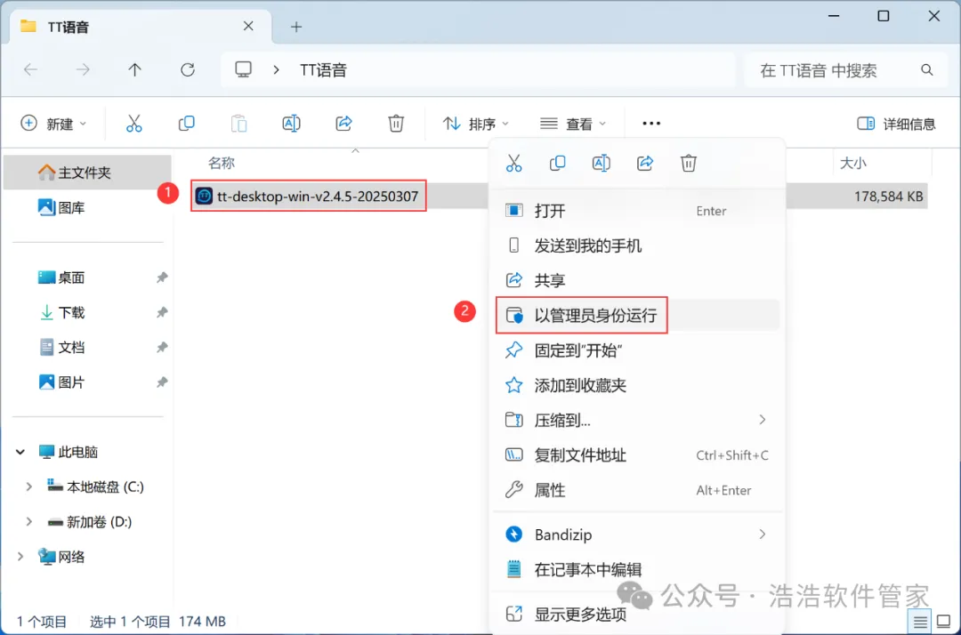 3、找到【TT语音】应用程序,右键选择【以管理员身份运行】它