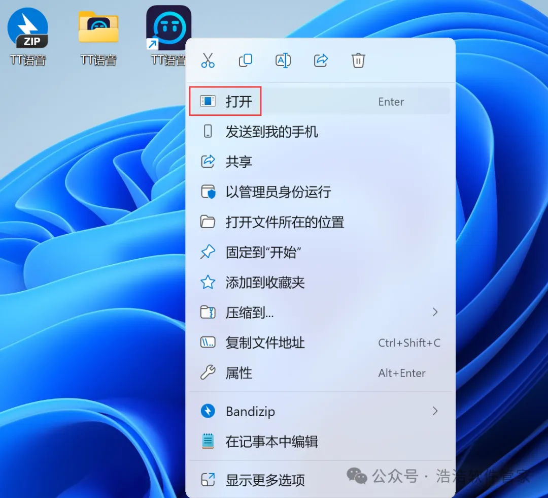 9、回到桌面,右键桌面上的【TT语音软件图标】,点击【打开】