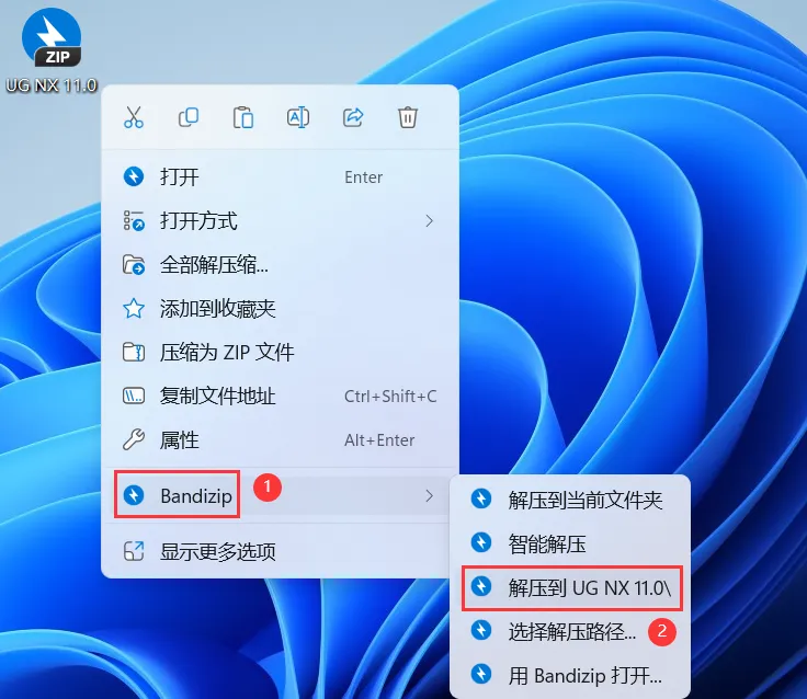 1、下载UG NX 11.0软件安装包到电脑上,右键选择【解压到UG NX 11.0\】
