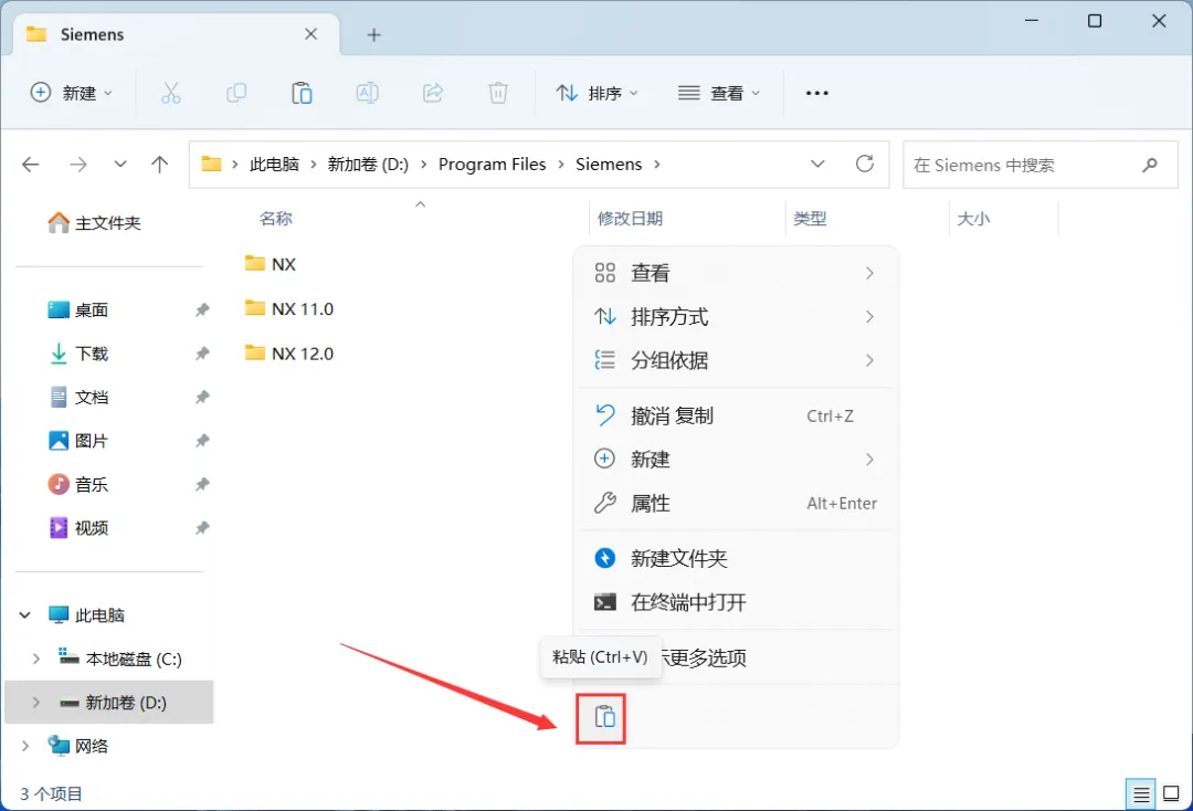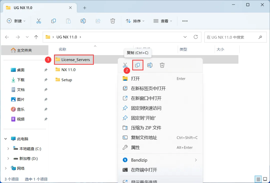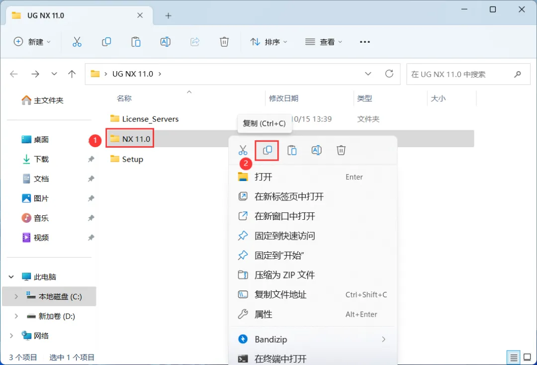 28、回到UG NX 11.0文件夹,找到【NX 11.0】文件夹,右键点击【复制按钮】