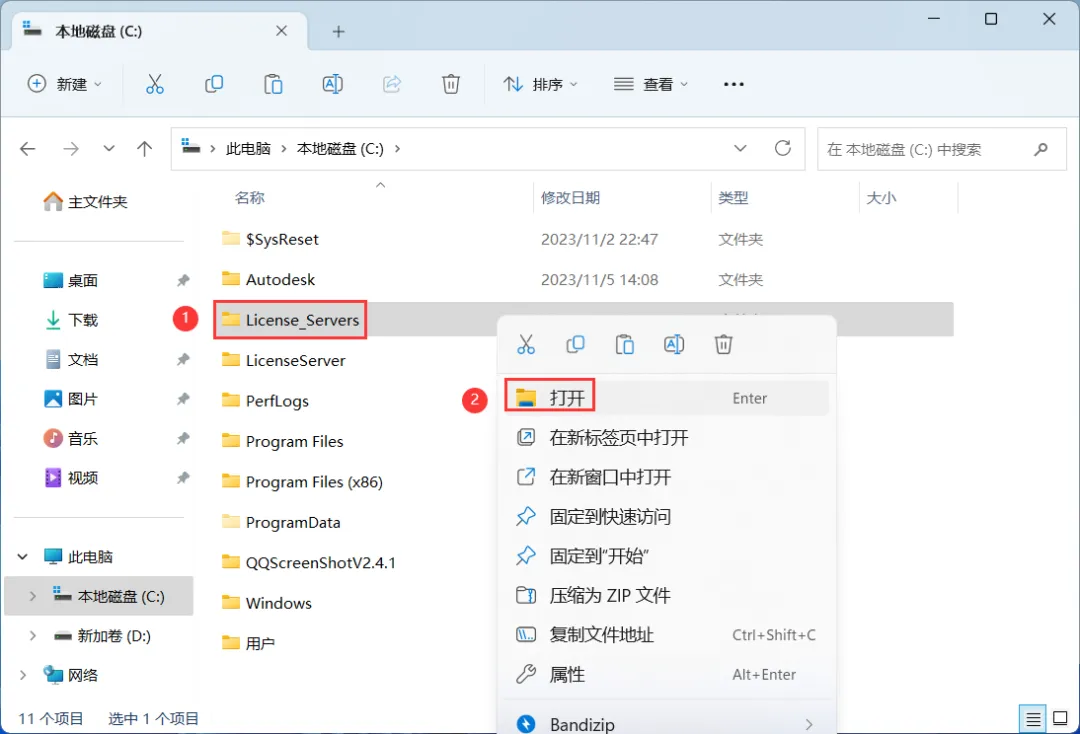 5、找到粘贴的【License_Server】文件夹,再右键【打开】它