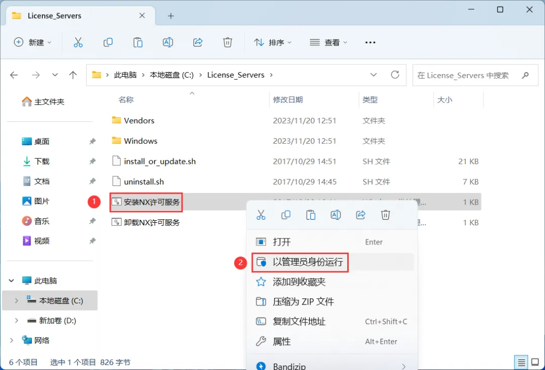 6、找到【安装NX许可服务】应用程序,右键选择【以管理员身份运行】它