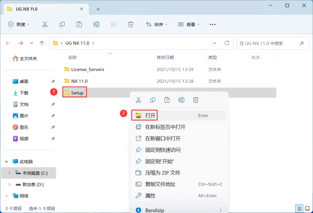 8、回到UG NX 11.0文件夹,找到【Setup】文件夹,右键【打开】它