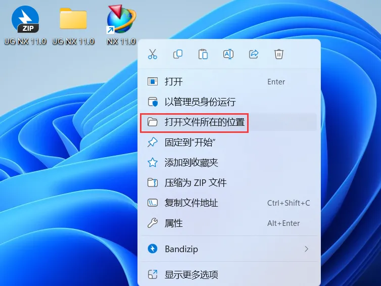 30、右键桌面上的【NX 11.0软件图标】,点击【打开文件所在的位置】