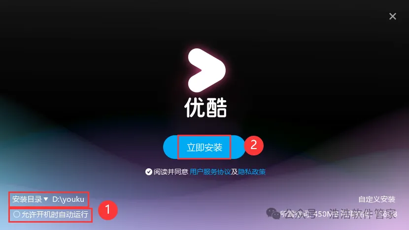 5、软件默认安装在C盘,可自定义更改软件安装位置,这里小编选择安装在D盘;取消勾选【允许开机自动启动】,再点击【立即安装】