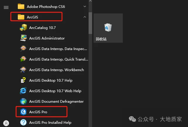 以上步骤完成后,在开始中找到【ArcGIS-ArcGIS Pro】,点击打开软件: