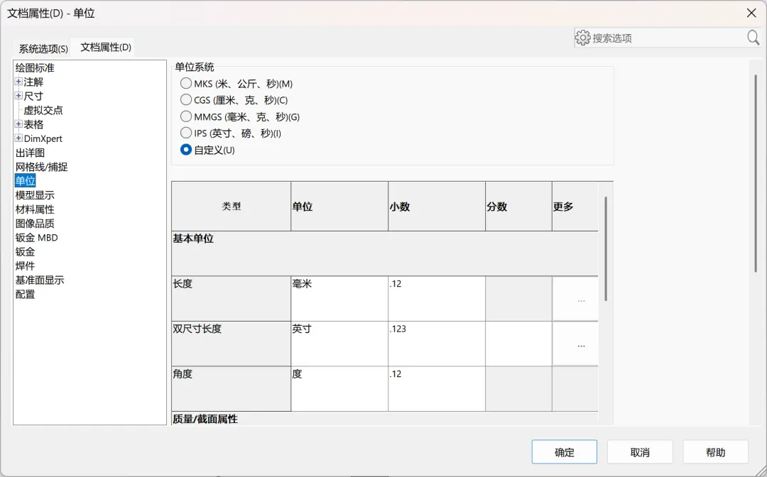 第六,在“文档属性”的“单位”选项,我们可以根据自己的情况选择单位。选择适合自己绘图的单位还是很有必要的。
