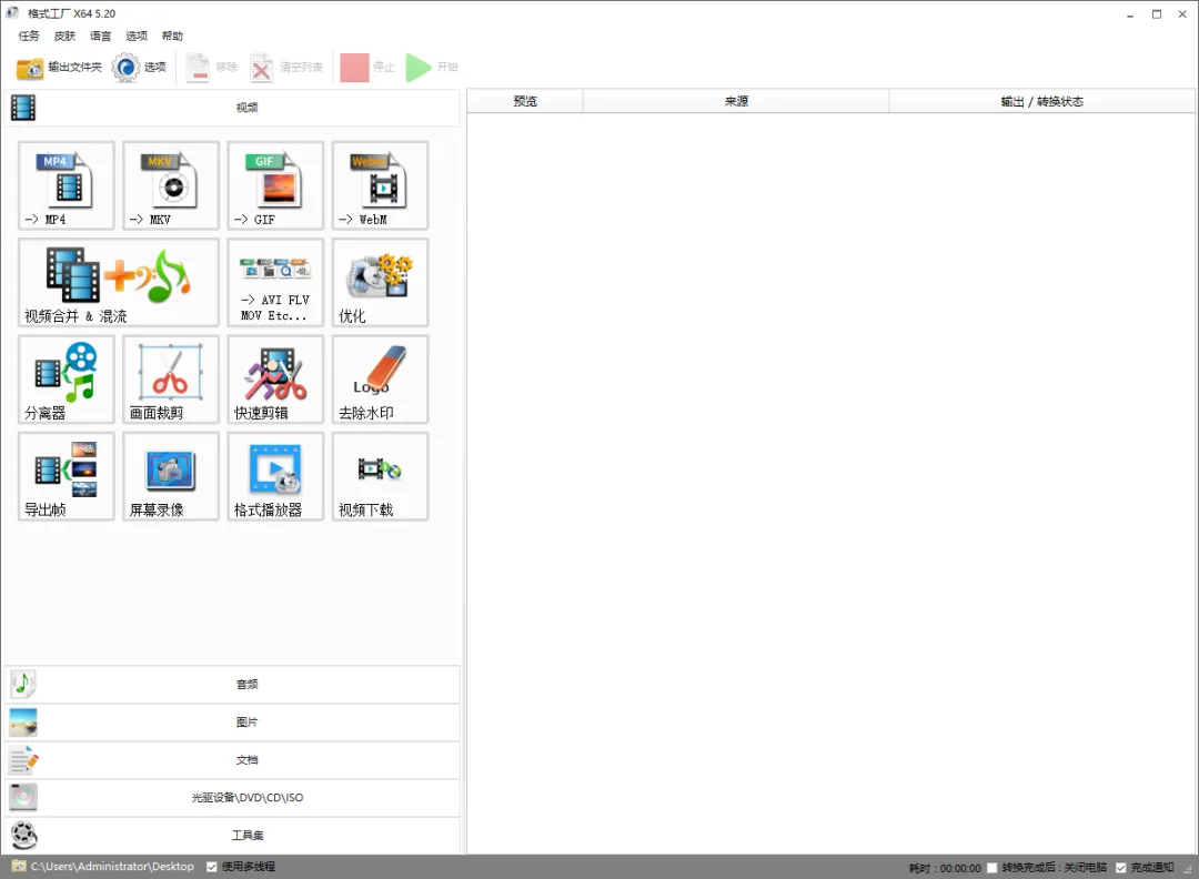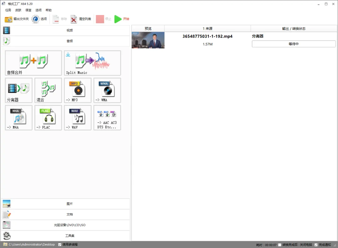 说到格式转换类的软件,不管是图片、音频、视频、文档转换,我都会推荐大家使用格式工厂,因为它免费、转换的类型多,而且老牌软件非常可靠。