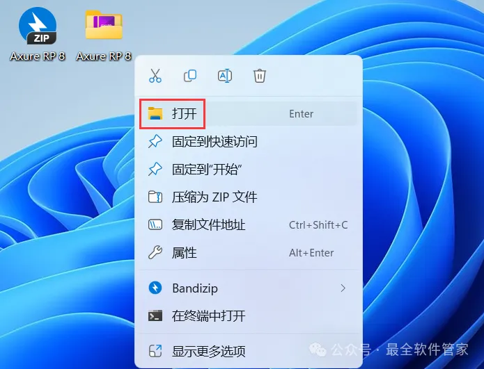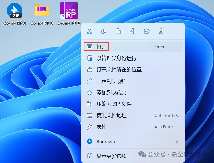 14、回到桌面,右键桌面上的【Axure RP 8软件图标】,点击【打开】
